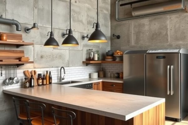 Styl industrialny bez cegły: jak stworzyć surową aranżację z betonu, metalu i drewna